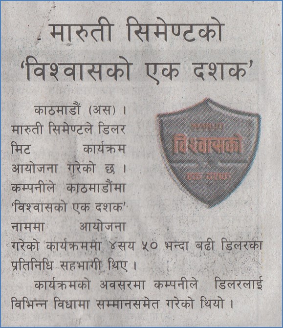 मारुती सिमेन्टको 'विश्वासको एक दशक'